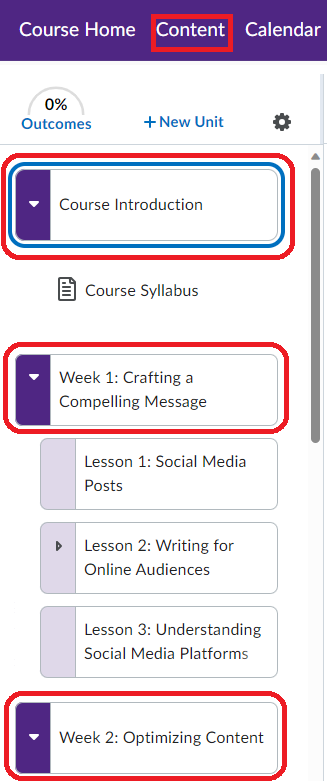 1. You have organized folders on your computer that contain files for different modules. (Each module could represent a week of content, a theme, or a unit.)