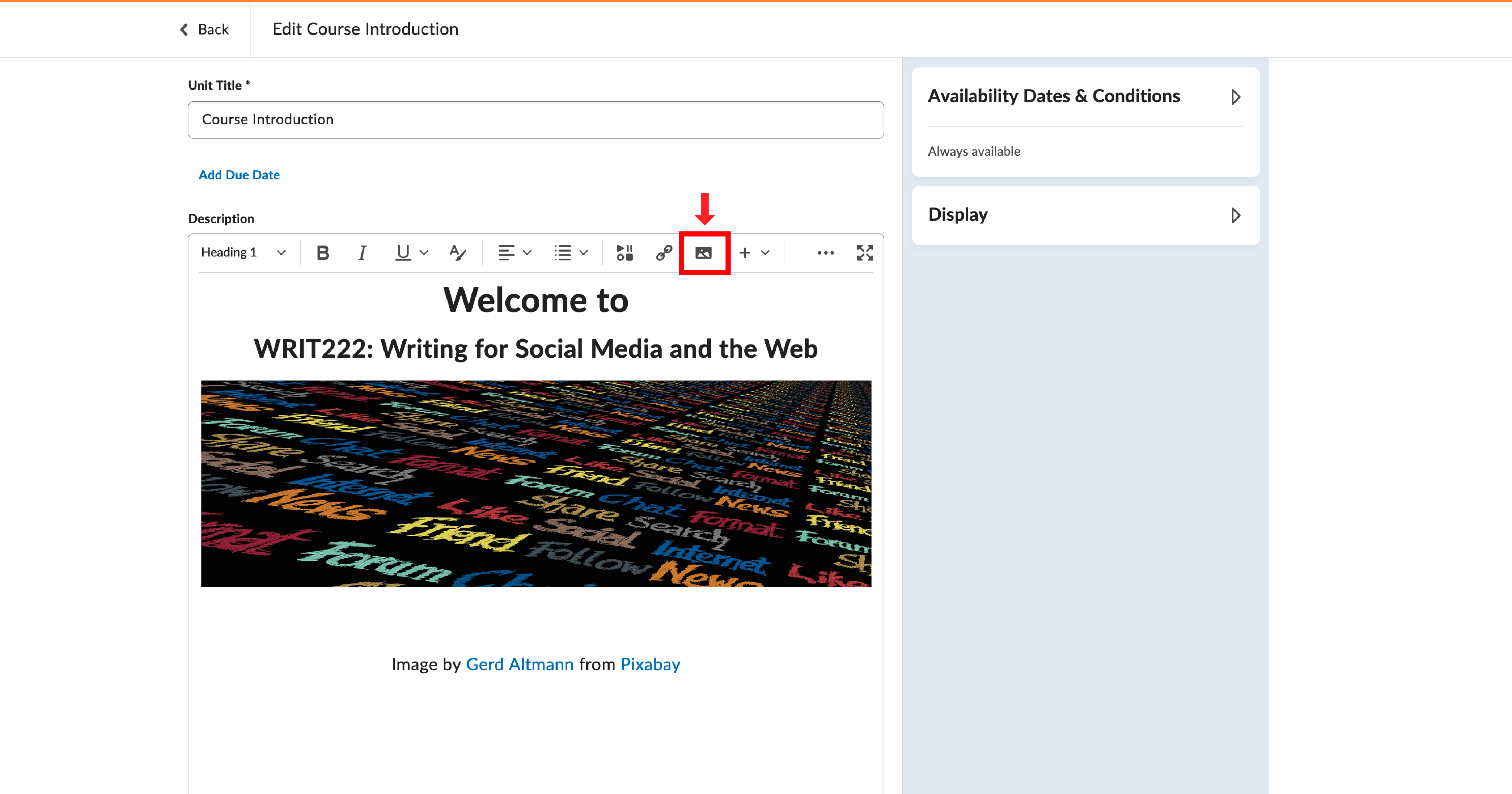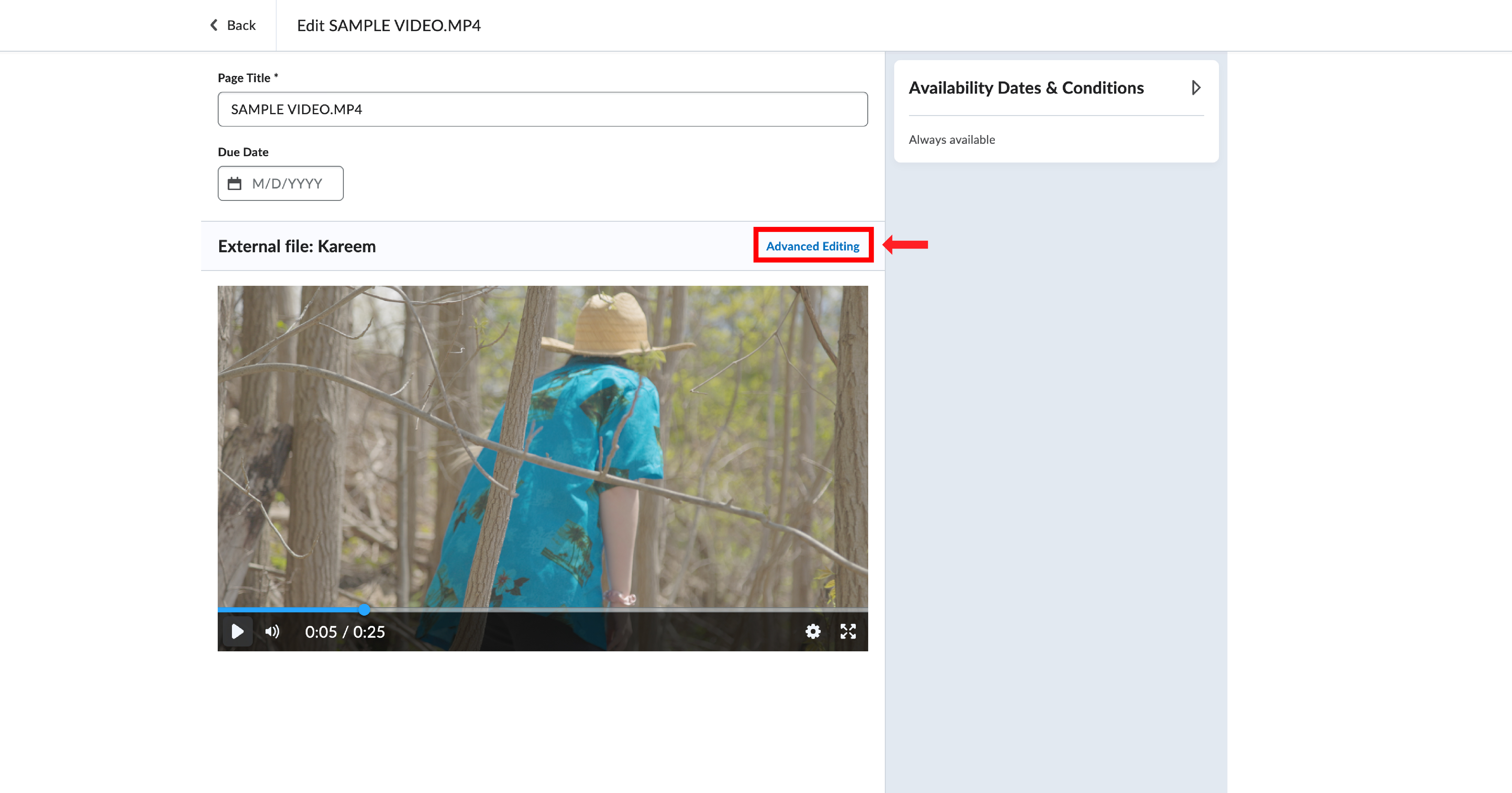 In Brightspace, when videos are uploaded, several features come into play when using the advanced editing tool in content editor: