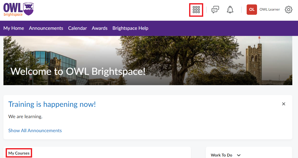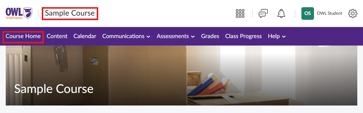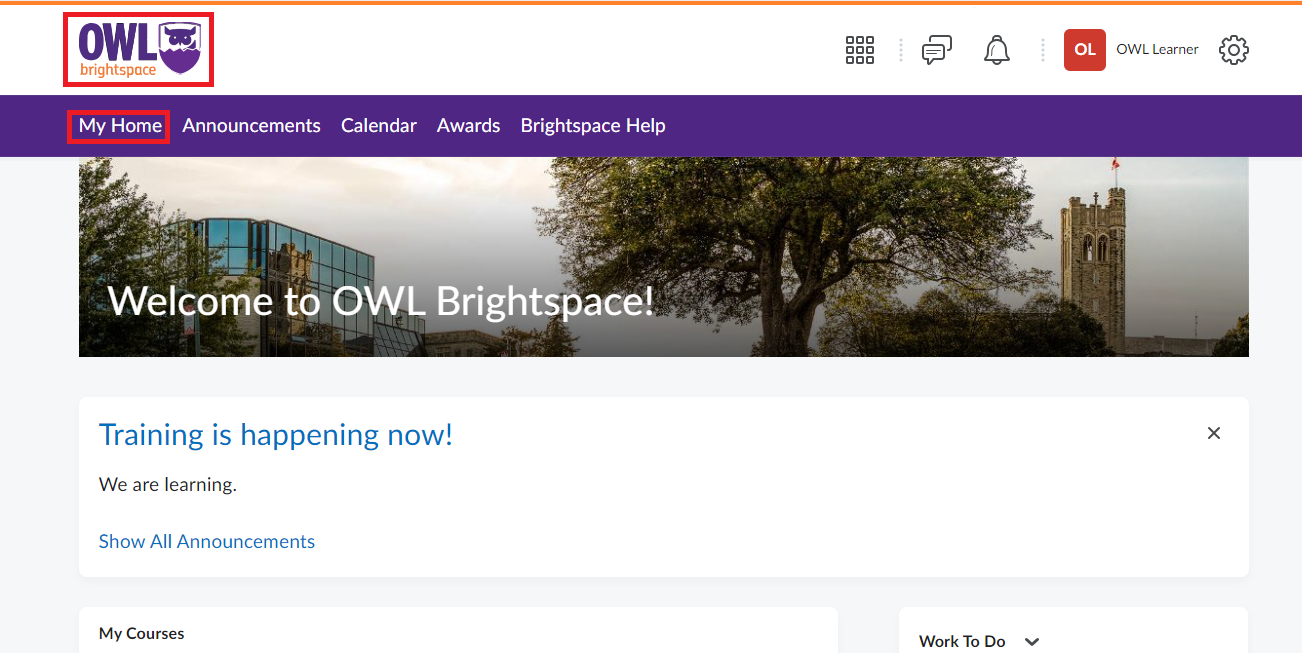 Return to My Home using the OWL Brightspace icon or the My Home button.