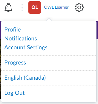 Utilize the Personal Settings Icon to maintain current and personalized settings. Update your Profile, Notifications, Account Settings (including accessibility settings), and preferred language within OWL Brightspace.