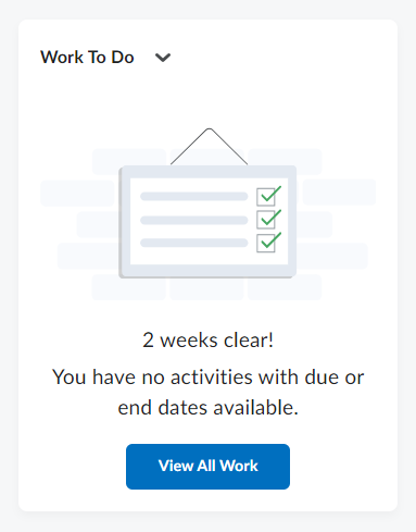 The Work To Do widget provides a comprehensive overview of quizzes, assignments, checklists, and more, displaying items with upcoming or past due dates directly on your homepage. Overdue tasks are prioritized at the top of the list, with upcoming items listed below. This feature is designed to facilitate progress tracking and ensure you stay on top of deadlines.