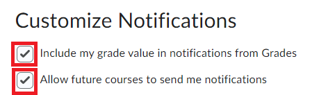 - Check the first checkbox in this section to enable the feature that allows you to receive an email with your grade value.
